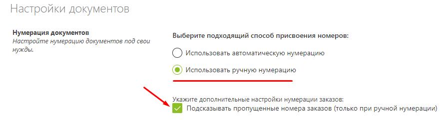 При ручной нумерации заказов вы сами можете вносить номер заказ по вашему усмотрению.