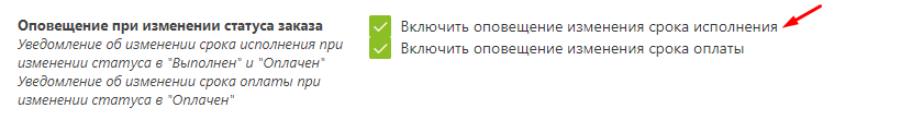 Настройка оповещений изменения срока исполнения или срока оплаты