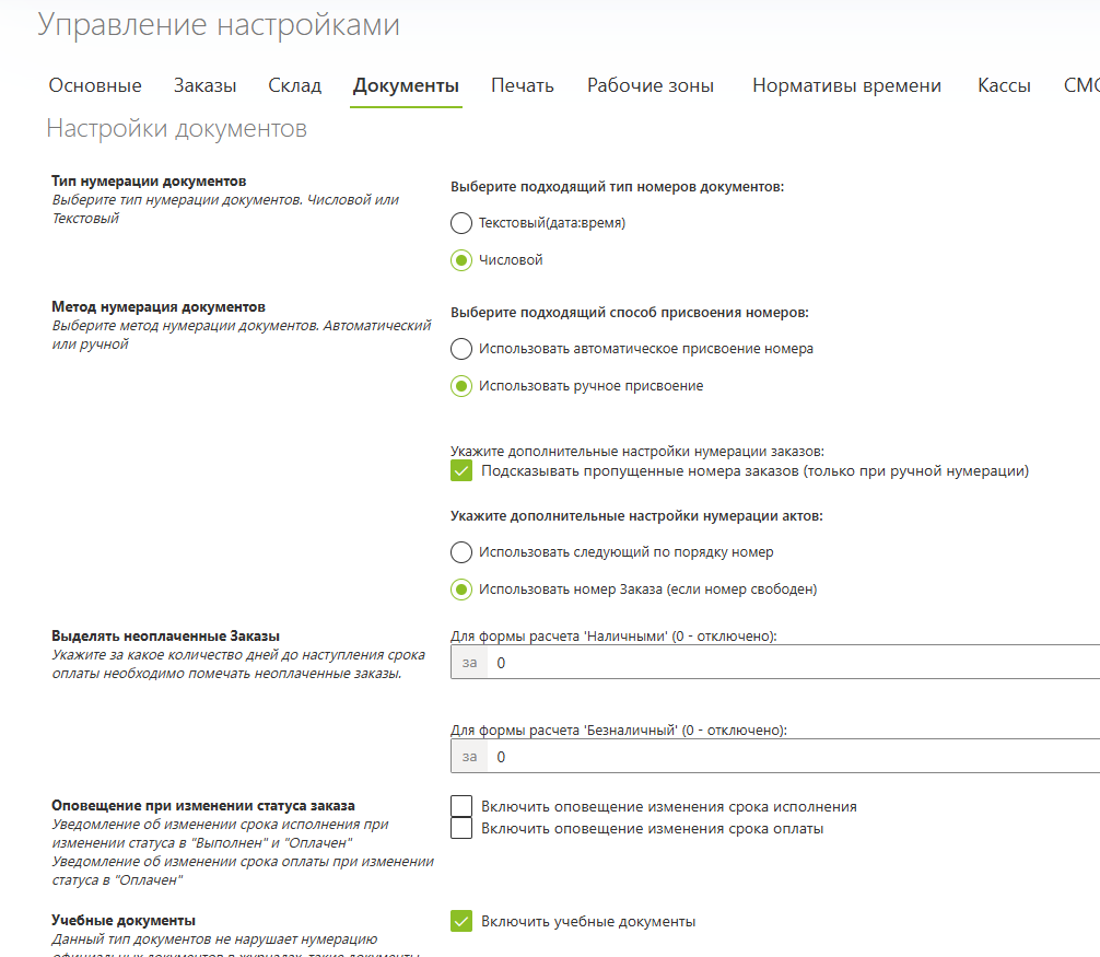Учебные документы предназначены для обучения сотрудника правильному составления заказа. При включенной опции вы можете создавать учебные документы.
