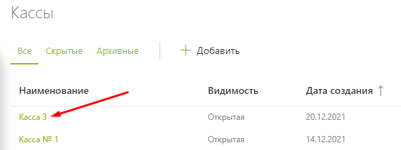 NB: Касса должна иметь уникальное название, т.е. вы не сможете создать две кассы с одним наименованием.