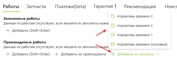 Обратите внимание: Если вы выберерите из списка норматив времени, то модификация автомобиля подтянется автоматически (информация появится в полях формы).