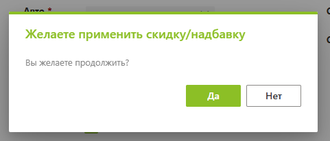 - Нажмите "Выбрать" напротив поля "Авто", появится уведомление о скидке / надбавке