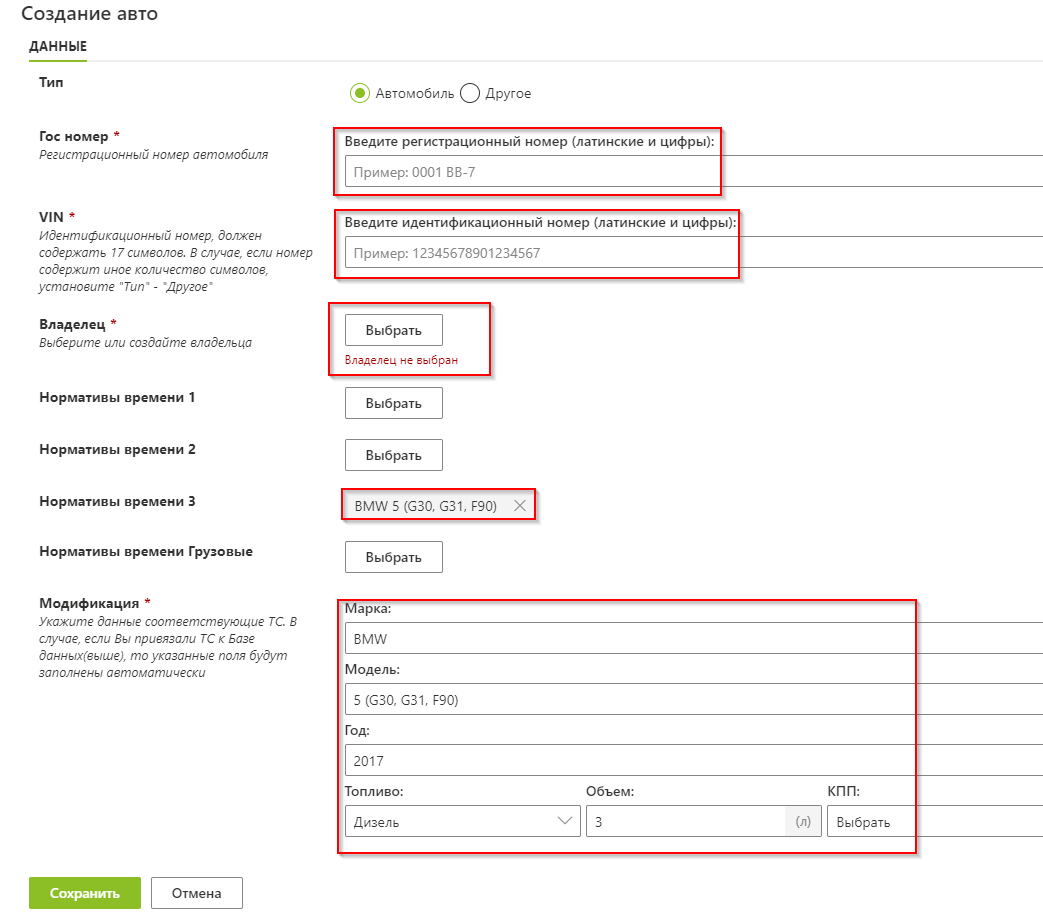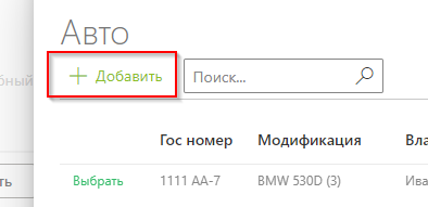 Если автомобиль есть в списке, просто выберите его и данные о владельце подтянутся автоматически.
