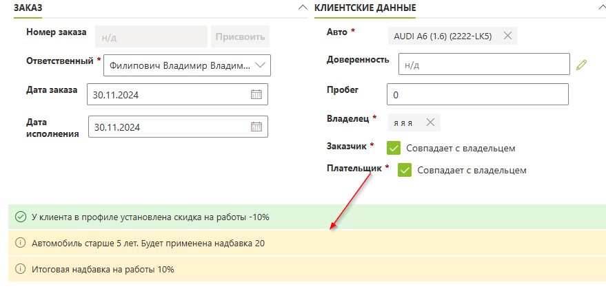 - Если вы выбрали или добавили уже автомобиль, данные владельца подтянутся автоматичеки