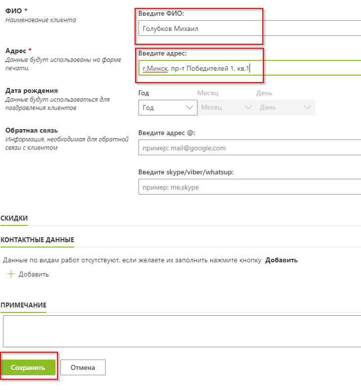 - Примечание – добавьте любую полезную информацию, связанную с заказом