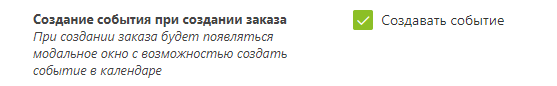 Если вы хотите, чтобы при создании заказа автоматически создавалось событие в календаре, включите опцию "Создавать событие". После создания заказа вы будете перенаправлены в календарь для создания события.