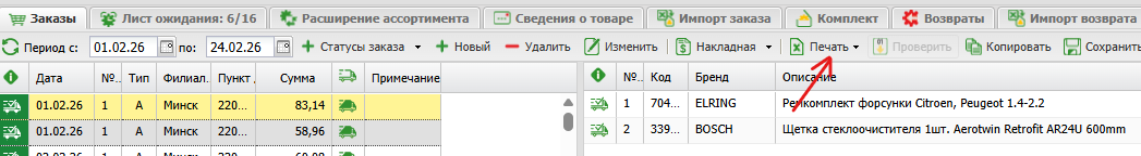 На сайте Мотекс переходим в Заказы, выбираем заказ и нажимаем печать.
